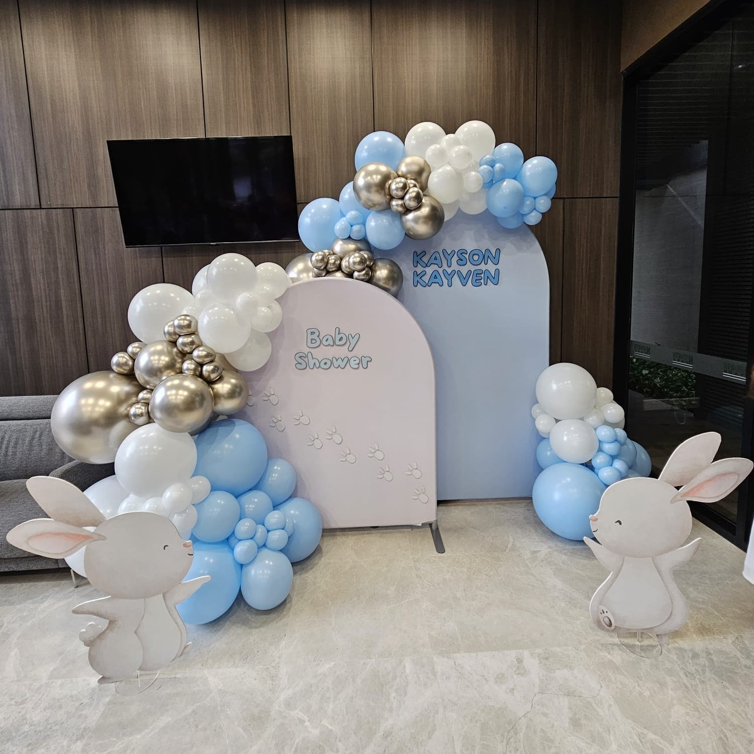 This balloon backdrop offers a refined, minimalist style with a solid color panel provides the perfect backdrop for your event. Enhanced by two customizable board standees and a complimentary plinth table, this setup allows you to add personal flair while maintaining an elegant and cohesive look. Ideal for birthdays, weddings, and corporate gatherings, this backdrop brings a touch of sophistication to any occasion.